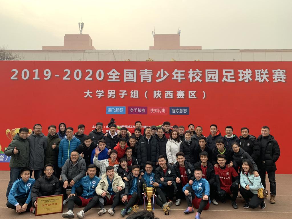 12月24日,2019—2020全国青少年校园足球联赛大学组男子组比赛(陕西赛区)在我校雁塔校区落下帷幕,经过15天紧张激烈的比赛,我校男子足球队蝉联校园组冠军,主教练王昊荣获“最佳教练”,队员祝立阳荣获“最佳球员”。省教育厅副厅长赵昶葆、我校副校长卢光跃参加闭幕式并颁奖。
