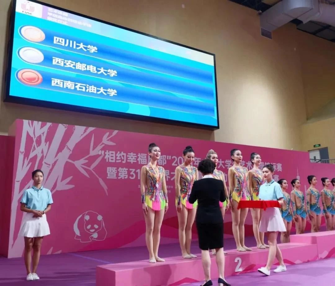 “相约幸福成都”2021年中国大学生艺术体操锦标赛暨第31届世界大学生夏季运动会艺术体操选拔赛在成都体育学院举行。来自全国各地31支高校队伍385名运动员参赛。西安邮电大学艺术体操代表队凭借出色发挥,荣获甲组亚军。