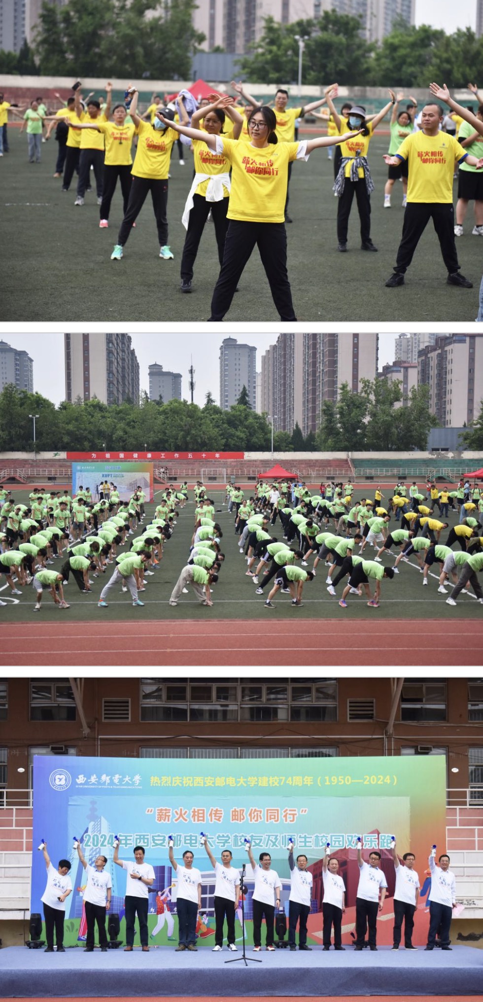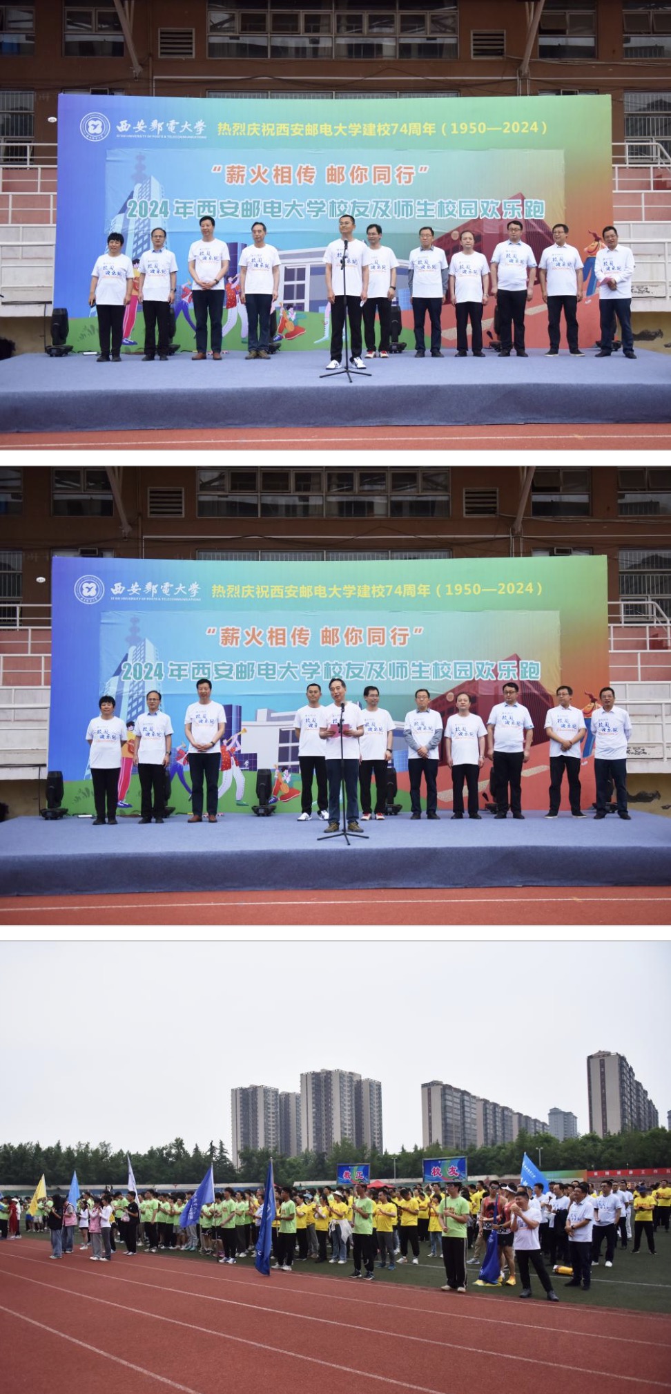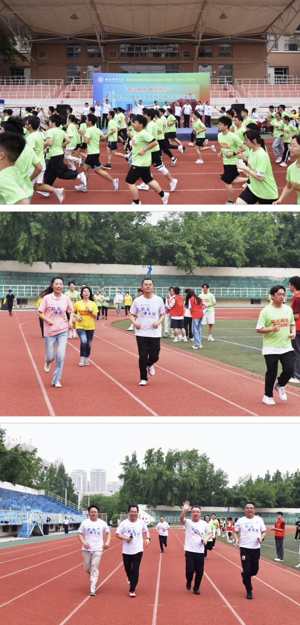 按照学校建校74周年校庆月系列活动安排,5月8日下午,我校庆祝建校74周年“薪火相传 邮你同行”校园“欢乐跑”活动顺利举行。校党委书记马宁,校长卢光跃,党委副书记郑大远、安增旺,党委副书记、纪委书记、监察专员张秦安,副校长韩江卫、苗忠、巩红、荆昊出席活动,500余名西邮师生和校友齐聚长安校区共同奔跑,感受西邮体育精神与文化的魅力。副校长楼旭明主持启动仪式。