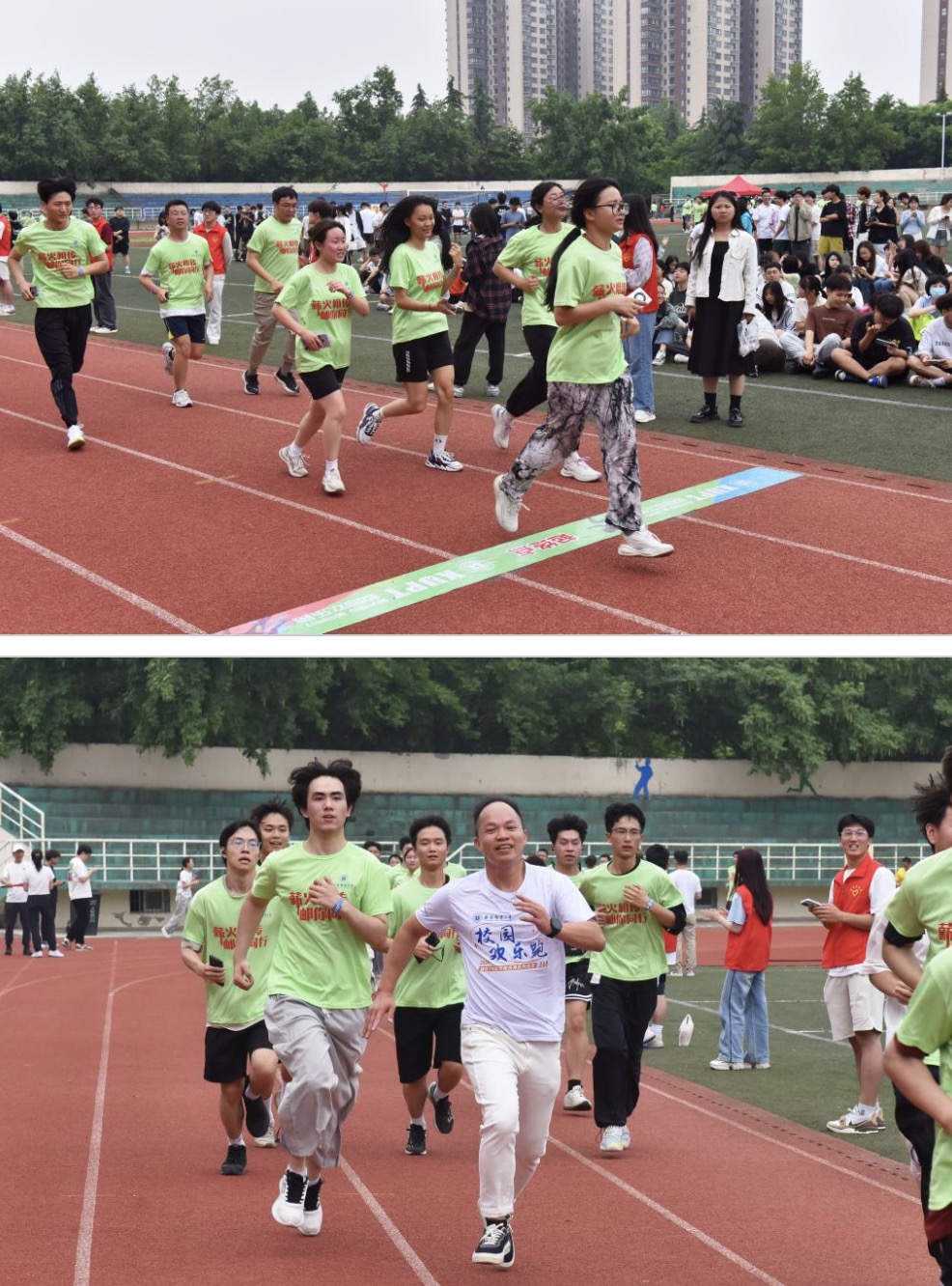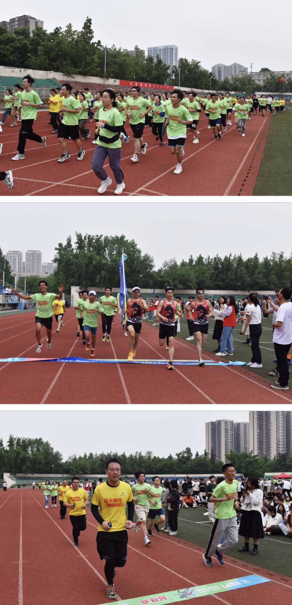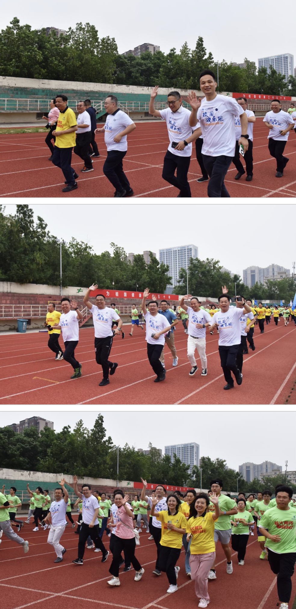 参赛师生和校友表示,在奔跑中感受快乐,展示了西邮人积极向上的体育力量,激发了爱国荣校之情,是在活动中得到的最大收获,希望活动越办越好,祝福学校生日快乐,勇攀高峰。
