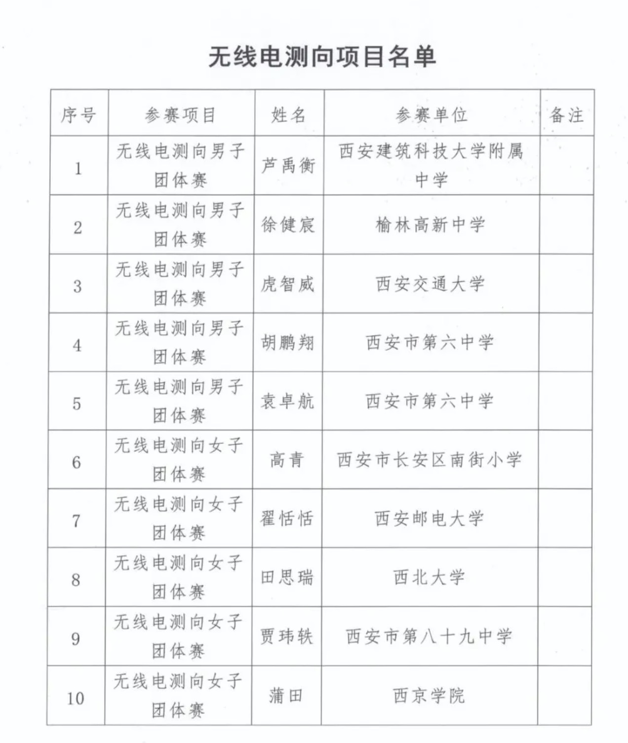 近日,第十五届全国运动会群众比赛定向和无线电测向项目陕西省选拔赛中,我校师生以卓越表现斩获殊荣。经陕西省体育局严格遴选,体育部教师刘静如获任定向接力赛教练员,通信工程2304班翟恬恬、自动化2301班王卓然、通信工程2404班曹淇淇、物理2401班郭开瑞四位同学成功入选集训队,将代表陕西省出战全运会预选赛。