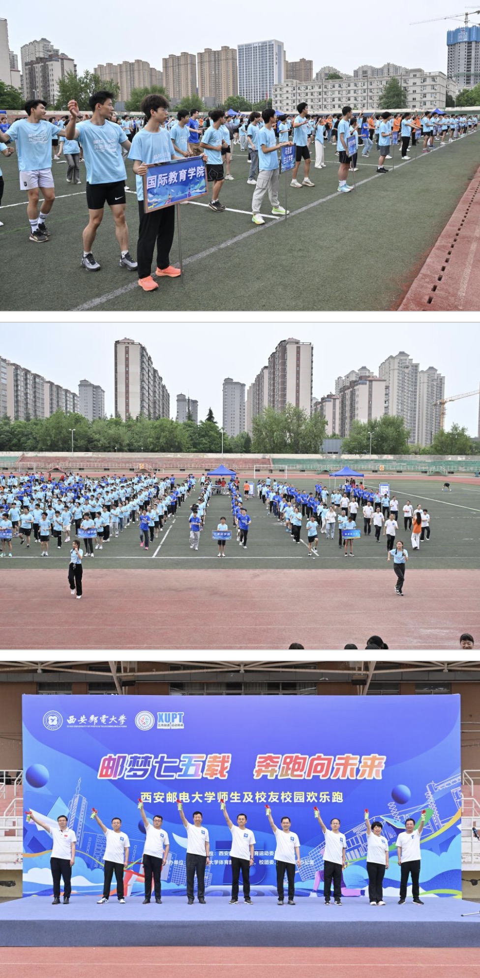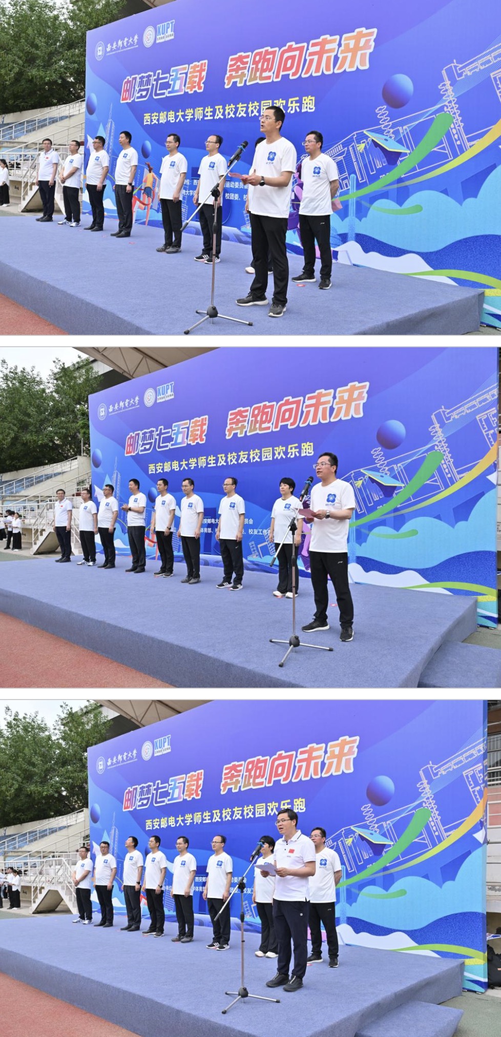 5月8日下午,“邮梦七五载 奔跑向未来”师生及校友校园“欢乐跑”活动在长安校区体育场顺利举行。校党委书记马宁,校长卢光跃,校党委副书记安增旺,副校长韩江卫、苗忠、巩红、荆昊出席活动,650余名西邮师生和校友齐聚长安校区共同奔跑,感受西邮体育精神与文化的魅力。副校长楼旭明主持启动仪式。