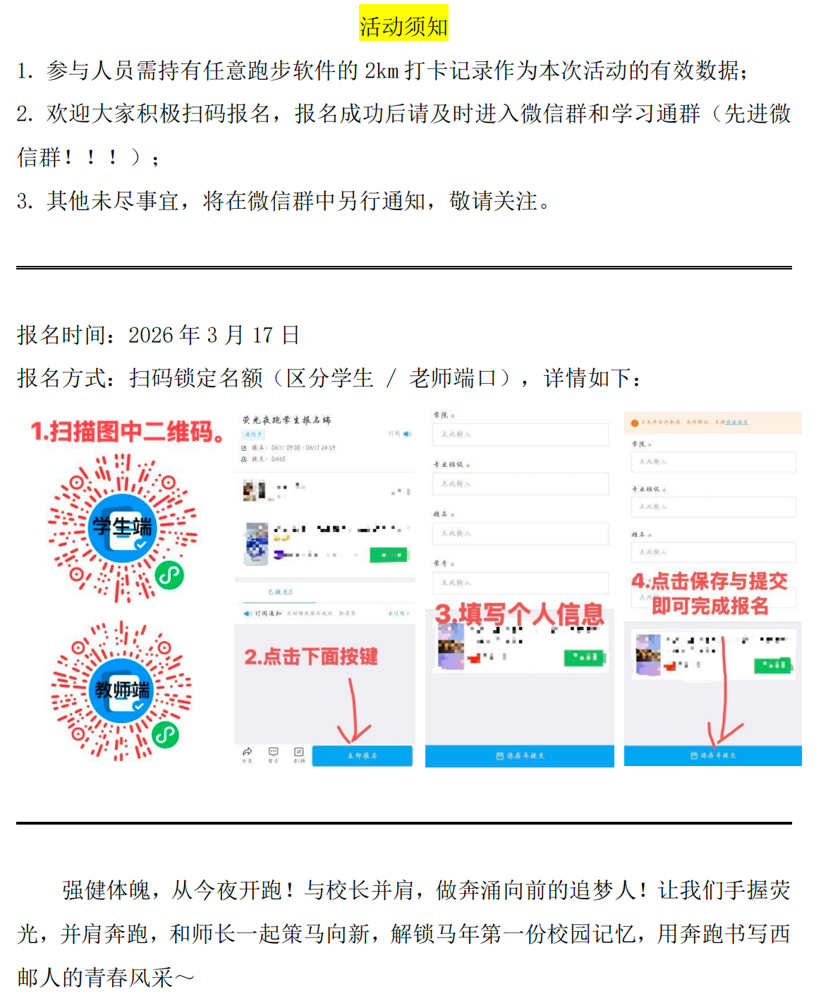 培育根基,强体报国|体育节系列活动 “追光而遇,伴星开跑”师生同行-2026 春校园荧光健康跑
